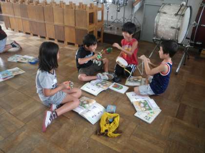 ギロやマラカス,ウッドブロックなど,珍しい楽器にわくわくしている様子が良く伝わってきます。