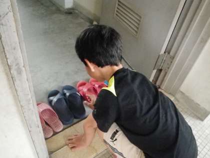 教室への帰り際,スリッパを並べているやさしい姿に出会いました。