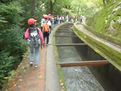 琵琶湖疏水記念館で,なぜ疏水を作ったのか,疏水はどのように作られていったのか等のことを勉強しました。その後,実際にインクラインを歩いたり,疏水の水の流れている様子を見たりしました。見学をしながら分かったことを記録しているみんなの姿勢は立派でした。
