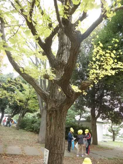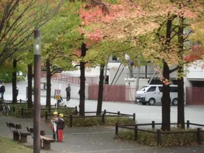 みんなで,春に出かけた西京極運動公園に行きました。葉っぱの色が変わっていました。イチョウ,カツラ,カエデ・・・赤や黄に色づいていました。きれいな葉っぱを拾いました。