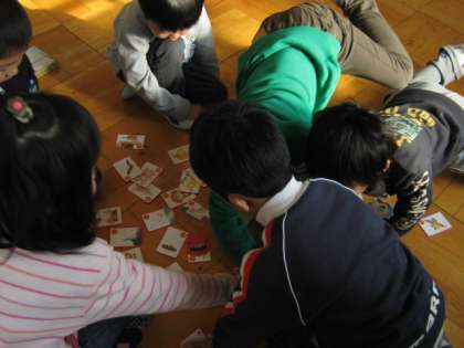「はねつき」や「おてだま」「かるた」「あやとり」「けんだま」「おはじき」などをしました。「難しいなぁ。」と言いながらもいろいろな遊びに挑戦し「できるようになった!」と楽しんでいました。