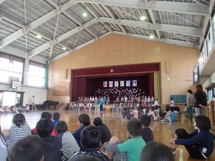 全身を使って歌い,身振りをする1年生の姿はとてもかわいらしく,そして輝いていました。