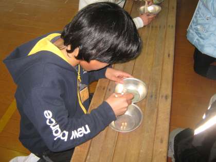 中学年の『豆つまみ大会』がありました。4年生は4チーム出場しました。