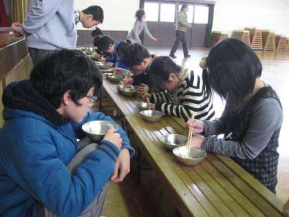 給食週間の取り組みとして,2月3日に「豆つまみ大会」がひらかれました。各クラスの代表選手たちが,リレー方式でスピードを競いました。