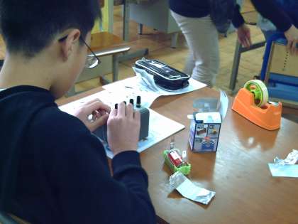 電磁石をより強くするためには、どうすればいいのかを考え、かん電池を2つにして、実験しました。電流計の使い方も学習しました。