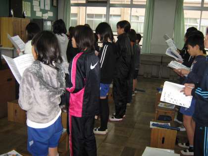 音楽の時間を使って,少しずつ卒業式で歌う歌の練習をしています。今年は「道」「そのままの君で」になりました。みんな真剣に歌い,仕上がりは予定よりも早く,気持ちも日に日に入ってきました。楽しみです。