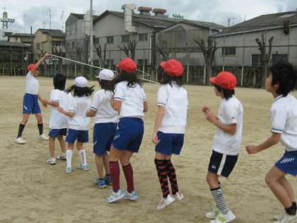 体育の時間に,なわとびをしています。ストレッチのあとにしています。体が温まるだけでなく,楽しいです。短なわとびと長なわとびに,取り組んでいます。