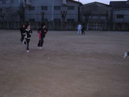 朝 6:30 元気にウォーミングアップ開始 朝から元気な声を出し,気合十分です。