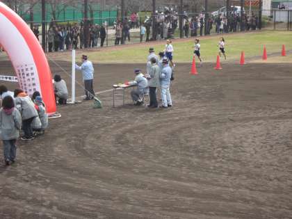 緊張の中,10:45スタート。出場選手10人が心でタスキをつなぎ,フィニッシュ。タイムは1時間25秒で25位。西西小,これまで4回の出場の中で最高の順位でした。