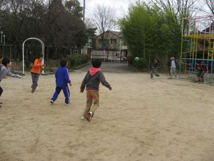 子ども達は負けるもんかとみんな一生懸命ボールを投げたり逃げたりしていました。