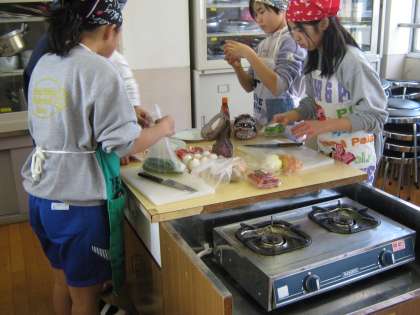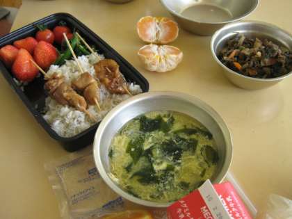 中学校での昼食を楽しみにして、たくさんの