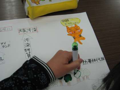 後期の総合的な学習は,環境について学習してきました。気候ネットワークの方にいろいろと教えていただいたり,自分で調べたりしました。