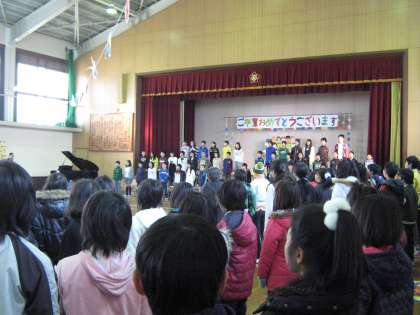 みんなで歌を歌い,各学年から言葉や歌を送りました。