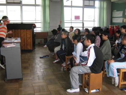 今日は,新しい音楽の先生とする最初の授業です。それそれが緊張しながら一生懸命自己紹介していました。