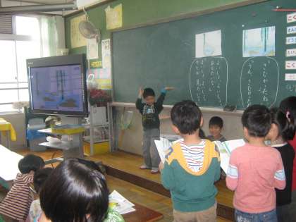 電子黒板のりようで、音読や挿絵がいきいきとみえて、竹林の様子が
