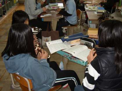 今日は雨が降りました。中間休み時間は,トランプをしたり,リコーダーをふいたりして過ごしています。