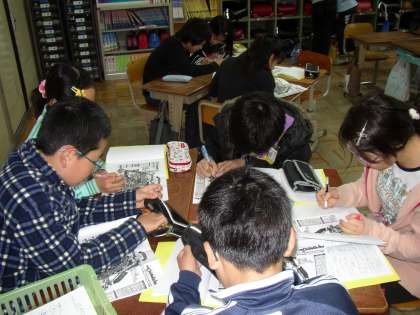 レオマワールドの乗り物を調べたり,どんな順番に乗るか・・・・班ごとに話し合っています。とっても楽しそうです。