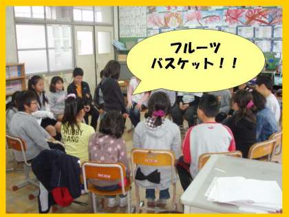 今日は,朝から雨が降っていて1日中外では遊べませんでしたが,中間休みには,遊び係さんを中心に みんなで「フルーツバスケット」をしました。楽しかったですね。