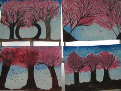 さくらの木が完成しました。完成したのは木だけですか,掲示しました。