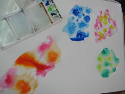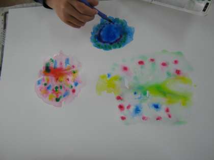 図工の学習では,絵の具を使って「にじみ」づくりをしました。