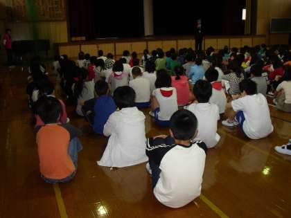月曜日の朝会です。校長先生の観察池の花の紹介など,自然の学習をしました。新しい先生の紹介も,行われ,これからの学習が楽しみですね。