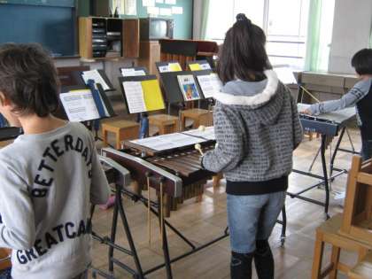 音楽で,合奏をしています。この日は,パートに分かれて練習をしました。