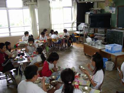 おいしい給食をみんなで楽しく食べています。クイズをしたり、放送委員会の放送を聞いたり・・・笑顔がいっぱい,いつも楽しいひとときです。