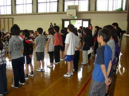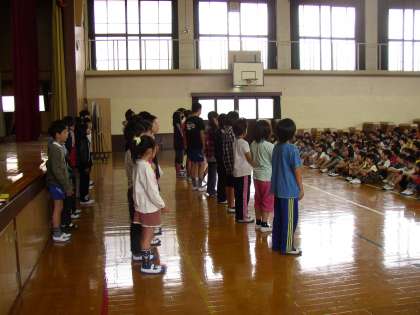 児童集会は毎月1回予定しています。今回は初めての会です。「本部委員・代表委員・委員長の紹介」をしました。いよいよ1年生を迎える会に向けて,進めていきます。楽しみですね。