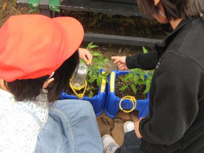 かわいらしい黄色い花を見つけて大喜びでした。これからどんなふうに成長していくのか楽しみです。