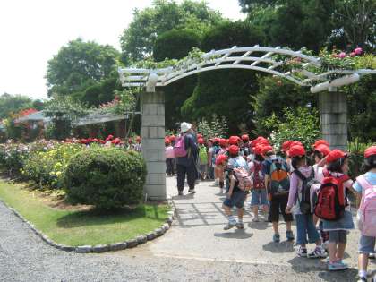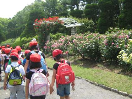 植物園に遠足で行って来ました。とても暑い日でした。ばらがとてもきれいでした。いろんな種類がありました。2年生とグループになり見学しました。