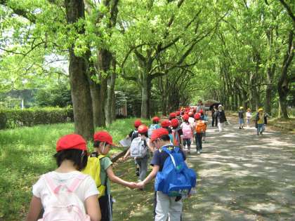 一緒にいろいろなところを探検したり,お弁当を食べたり,元気いっぱいあそんだり。