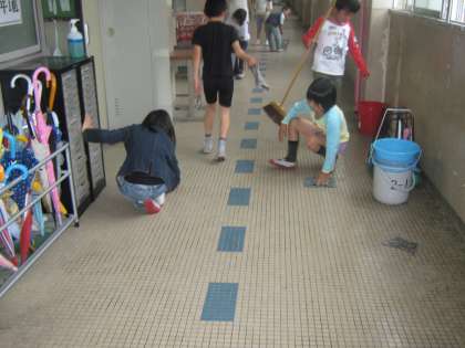 雨がふっていましたが、掃除の時間になると、みんなで、一生懸命に