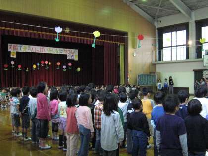 学校探検や遠足でいっしょに活動した一年生に,心をこめて歌と言葉をプレゼントしました。これからも仲良くいろいろなことに取り組みたいです。