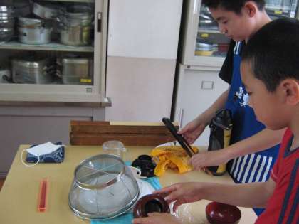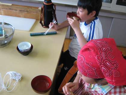 グループで協力して頑張った結果,失敗はなく,どのグループもおいしいみそ汁が出来上がりました。