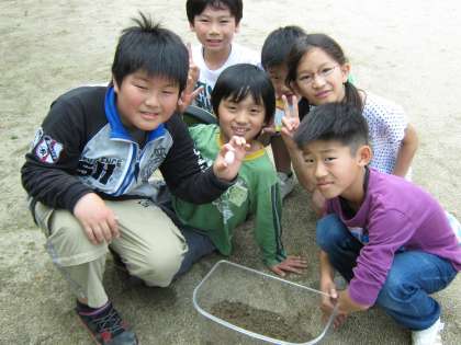「先生,カメのたまごが・・・」「観察池に住んでいるカメが産んだんやで」カメのたまごを手に持って教室に飛び込んで来ました。「どのように育てたらいいかな?」「図書室に行って調べよう」と子どもたちの目は生き生きしていました。