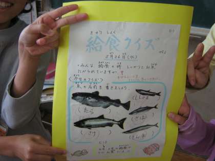 給食調理員さんが,『給食クイズ』を出題して下さいます。