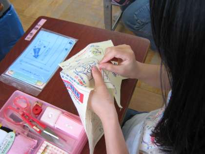 山の家に持っていく,ナップザックをつくります。がんばりましょう。
