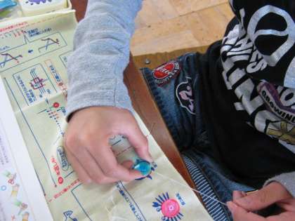ボタンを付ける練習もしました。来週は,なみ縫いの練習をします。