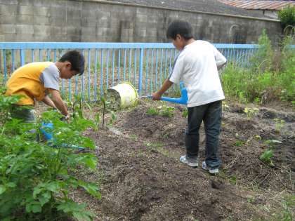 たくさんの野菜を育てているので,一つ一つにしっかりと水やりをしました。暑さに負けず,大きく育ってほしいです。