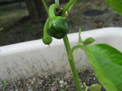 なんと,ピーマンの実です。りりこの実もたくさんできてきました。