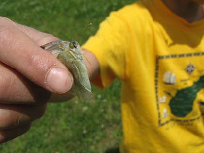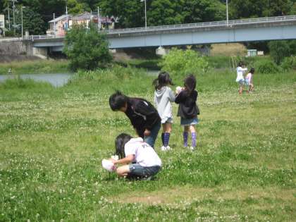 桂川河川敷に虫とりに行きました。理科「こん虫をしらべよう」の学習です。お天気はとても良くて風も気持ちが良かったのですが,チョウの姿はほとんどなく,バッタが少しとテントウムシくらいしか見つかりませんでした。例年になく気温が上がらず涼しい日が続いているせいでしょうか。それでも学校に持って帰った子どもたちは,うれしそうに飼育ケースをのぞきこんでいました。