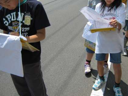 今回の町たんけんは学校から南のほうへ行きました。こちらは,会社や工場が多いところだと,事前に話していましたが,実際に歩いて確かめることができました。同時に,住宅も多いことに気づいた子どももいて,この後の地図作りに生かしていけそうです。