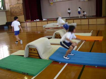 今日は,ハンドスプリングという跳び方に挑戦しました。倒立の練習・・・前方回転の練習・・・そして跳び箱での練習と,とてもやる気満々で難しい跳び方に挑戦することを楽しみました。