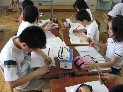 国語では,「学級討論会をしよう」に入りました。テーマを設定し,肯定グループ,否定グループ,聞くグループの三つに分かれて自分たちの意見とその理由などを主張しあいます。まずは準備です。一人ひとりの意見をまとめ,それをグループの主張とし,役割も分担し,説得力のある意見交流になるようにじっくり話し合っています。どんな討論会になるか楽しみです。