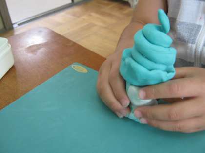 図工の時間にねん土でソフトクリームを作りました。本物そっくりにおいしそうな