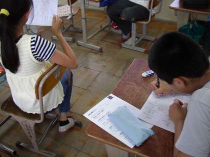 漢字10問テストをしました。1問10点,みんな100点を目指して頑張って覚えます。