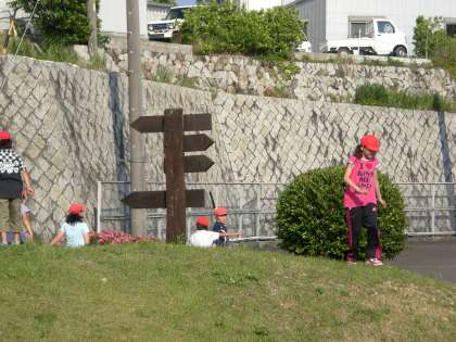 あちこちに隠れているクイズを探し,グループで協力して問題を解きました。