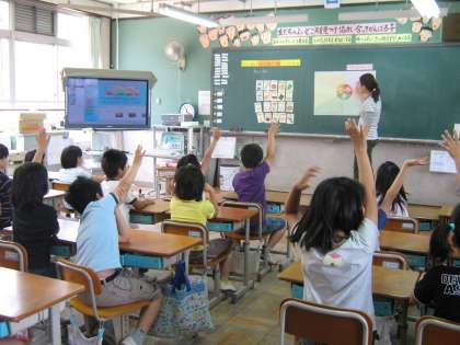 栄養教諭の古賀先生から「食品の三色分類」について教えていただきました。いろいろな食品のカードを赤・黄・緑に分けながら,どの食品も自分たちの体を作ってくれる大切な食べ物だということに気づきました。
