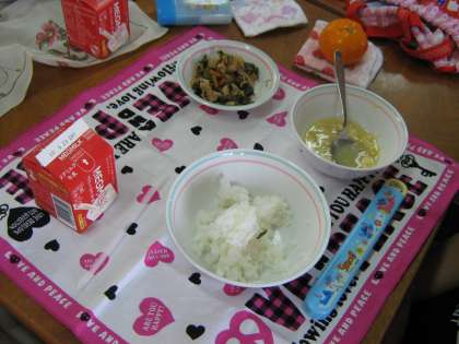 また,この日は陶器の食器で給食をいただきました。いつもの給食がもっとおいしそうに見えるねと,喜んでいました。