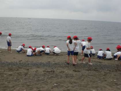 前半は砂浜で,山を作ったり,貝みつけをしたりしました。